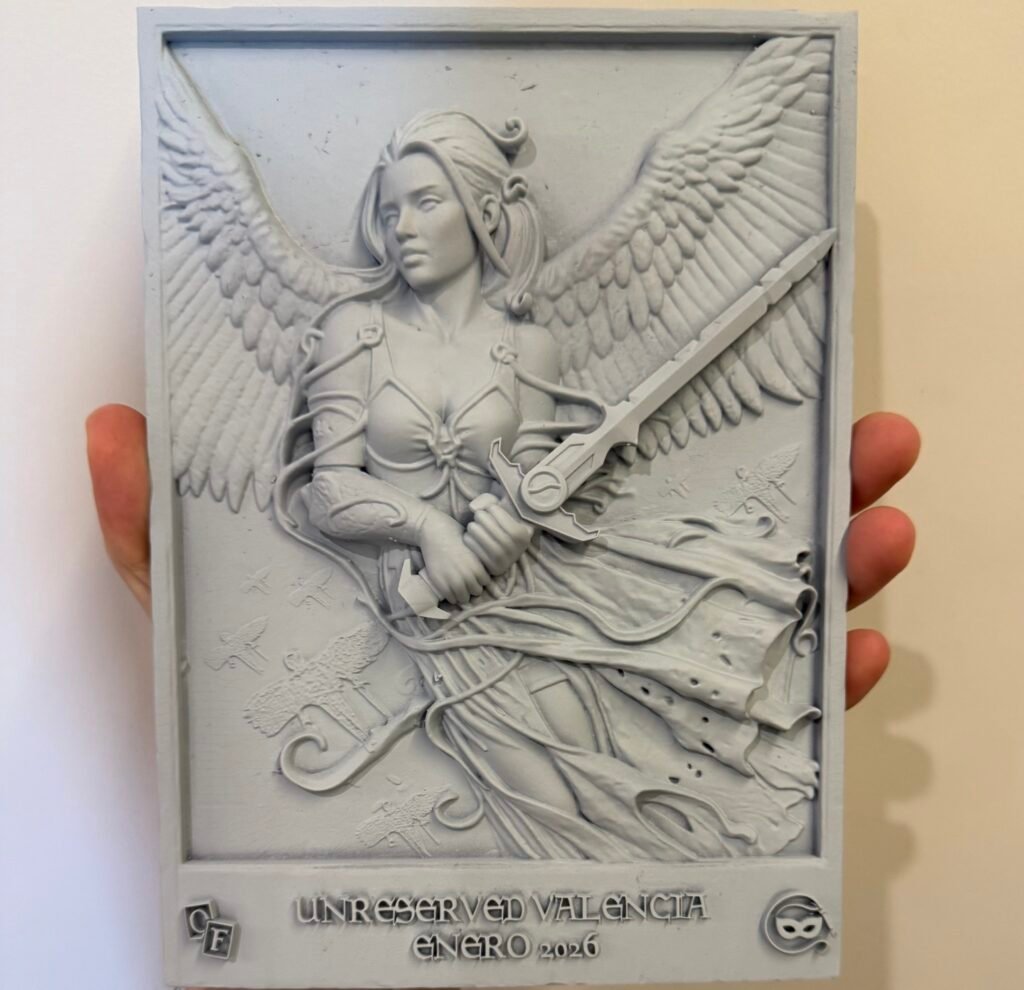 The prize for this event was a custom bas-relief trophy inspired by Exalted Angel from Onslaught.