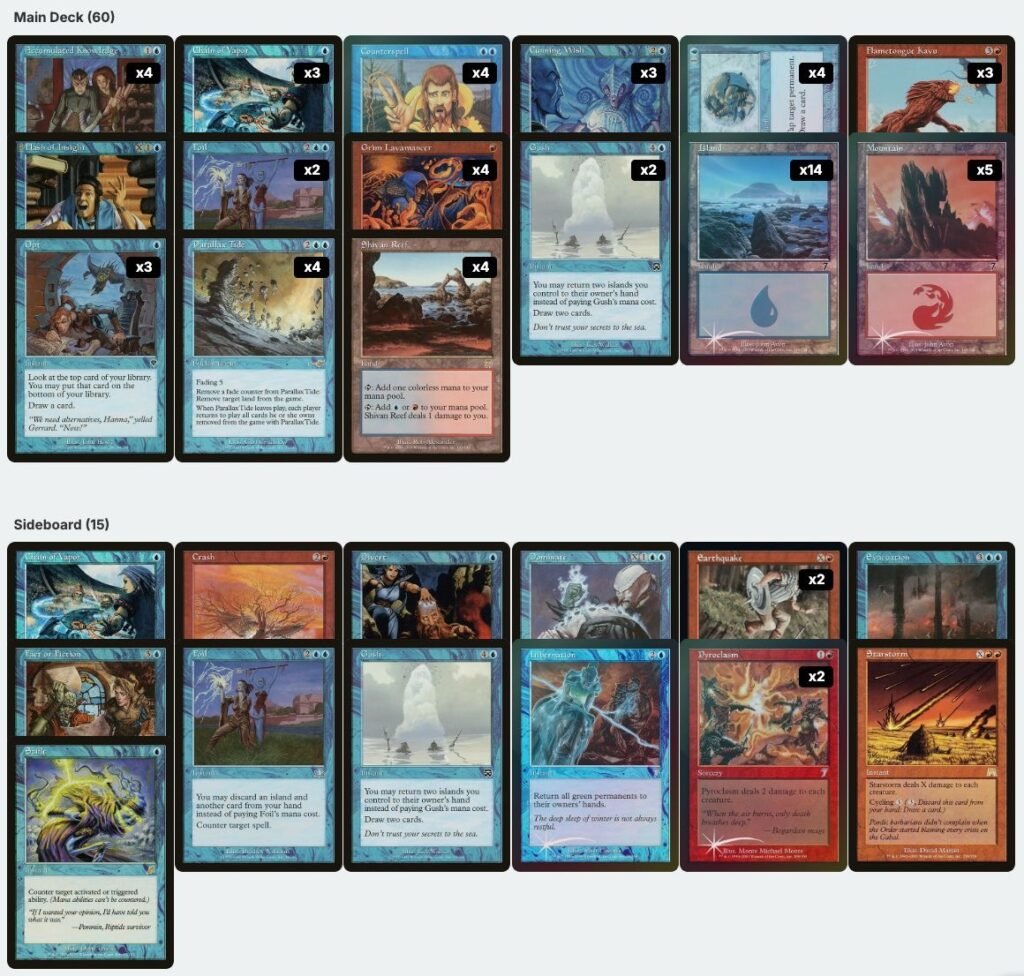 Unreserved is our local custom format built from Old Frame sets from Mercadian Masques to Scourge, including Seventh Edition. The format is still very open, which keeps deckbuilding and matchups varied even in small events.