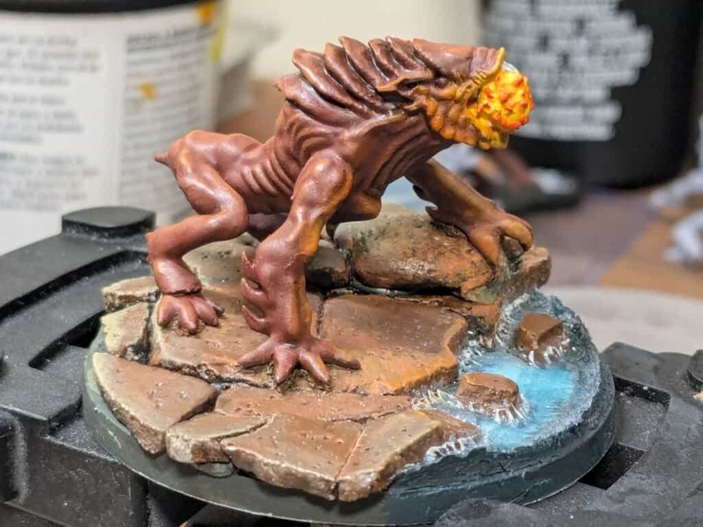 Flametongue Kavu is one of the most iconic creatures in this card pool and a frequent sight in Unreserved decks, so having it represented as a custom miniature painted by one of the players was a perfect, very in-format reward.