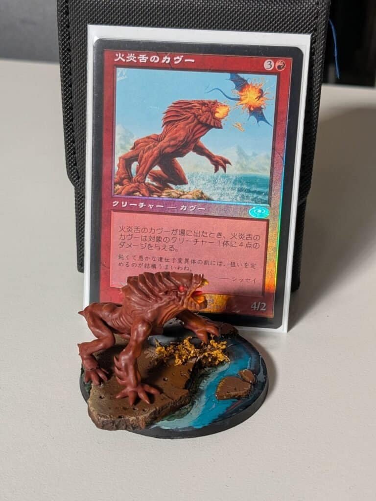 First place came with a very on-theme reward. Fernando received a Flametongue Kavu miniature, painted by fellow participant José María Toledo. Flametongue Kavu is a familiar presence in Unreserved, so having it appear on the prize table in miniature form felt very appropriate for the format.